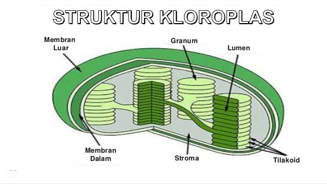 Chloroplast) adalah bagian dari plastid yang mengandung klorofil. Tilakoid adalah suatu kantong yang berbentuk pipih. Kloroplas juga dapat ditemukan di hampir semua jenis tumbuhan, namun kloroplas coba simak gambar di bawah ini untuk lebih mudah dalam mempelajari struktur yang ada di dalam kloroplas Kloroplas ini berisi zat hijau daun yang disebut klorofil. Pada gambar tersebut terlihat bahwa kloroplas dibungkus oleh membran ganda, yaitu membran internal (dalam) dan membran eksternal (luar). Gambar 2.1 penampakan kloroplas pada tumbuhan tinggi bila dilihat dari samping dan atas gambar 2.3. Bagi tumbuhan, kloroplas mempunyai peran penting terutama saat terjadi fotosintesis. 3 = stroma (cairan kloroplas yg berfungsinuntuk menyimpan hasil fotosintesis). Kloroplas merupakan plastida berwarna hijau. Mitokondria dan kloroplas memiliki kemiripan dalam hal jumlah lapisan membrannya yaitu Mitokondria dan kloroplas memiliki kemiripan dalam hal jumlah lapisan membrannya yaitu Fungsi kloroplas adalah sebagai tempat terjadinya proses fotosintesis. Kloroplas dapat dilihat pada gambar.